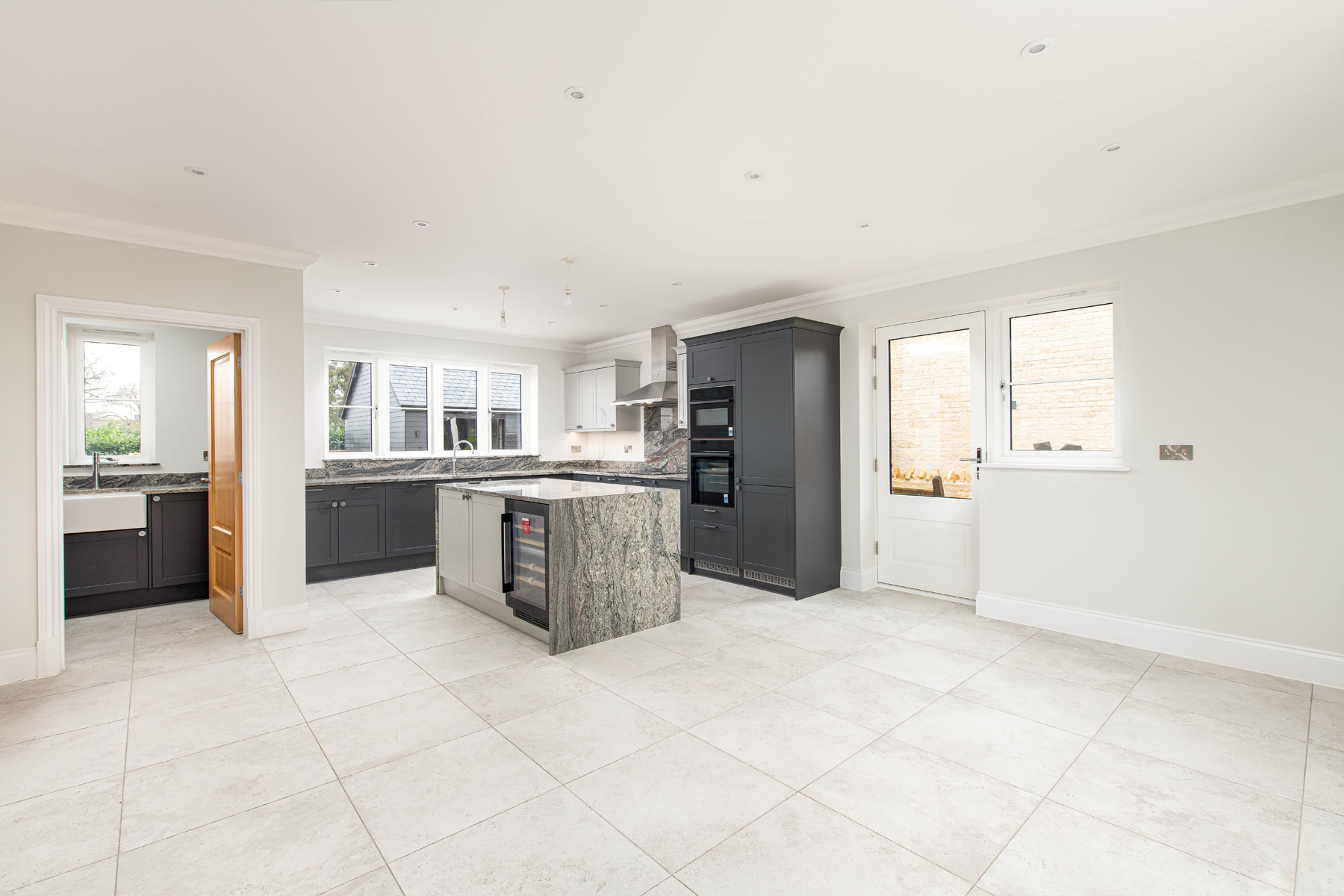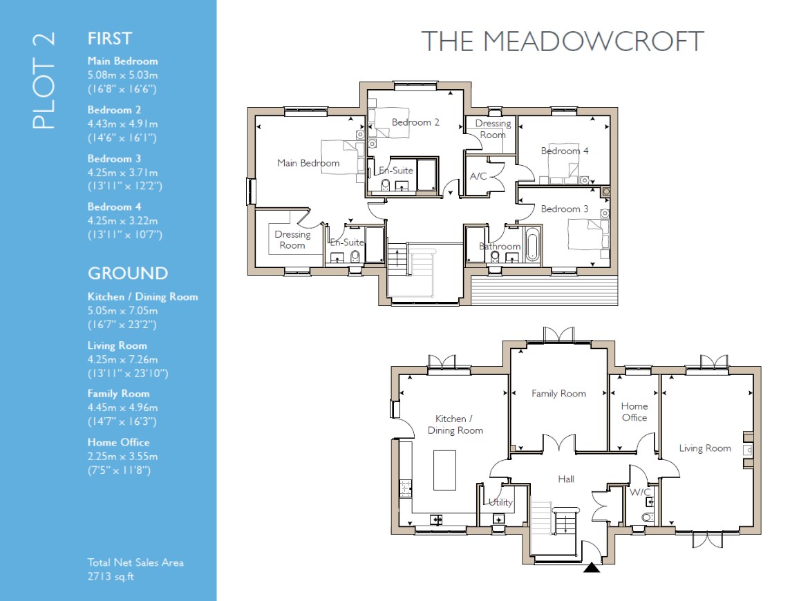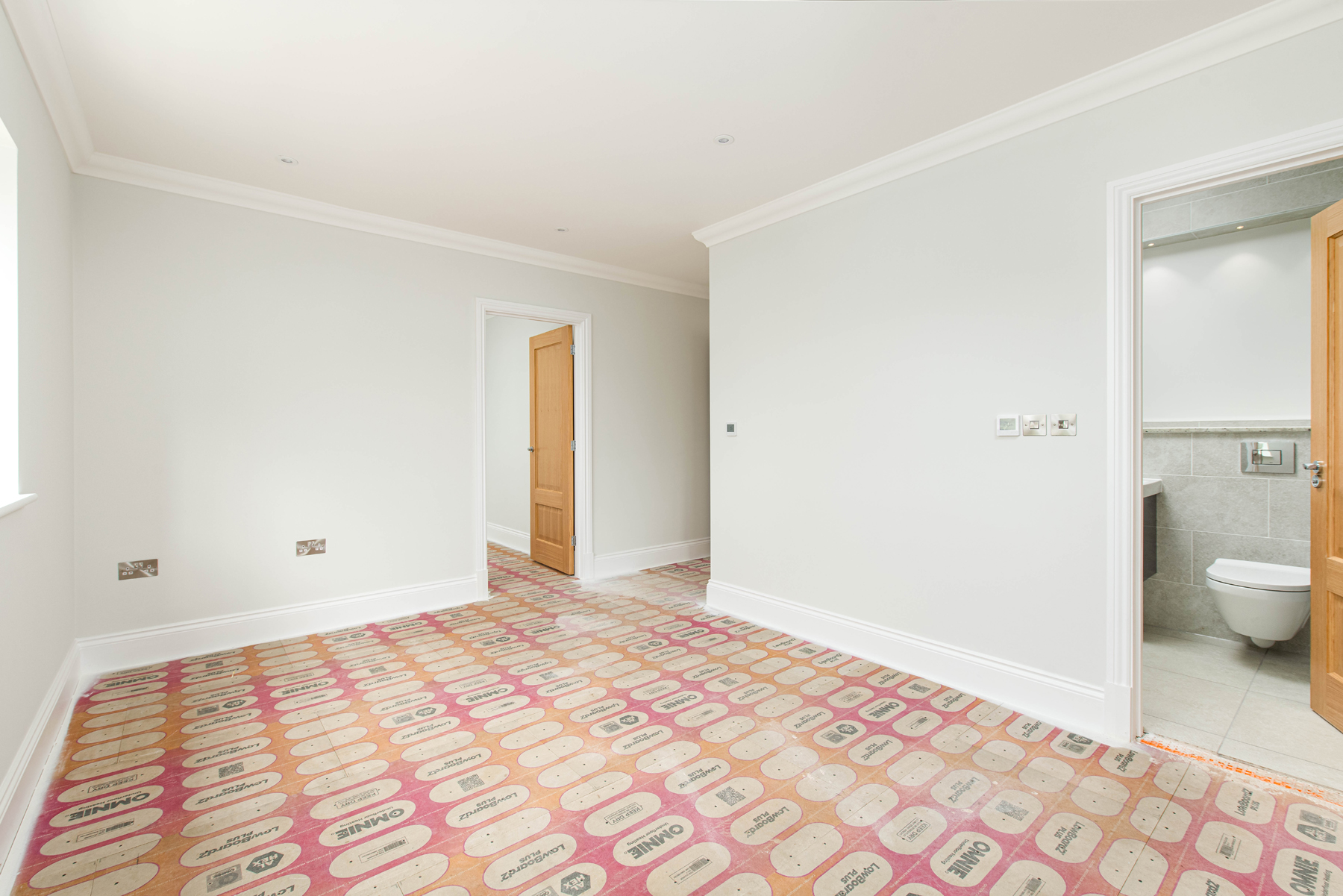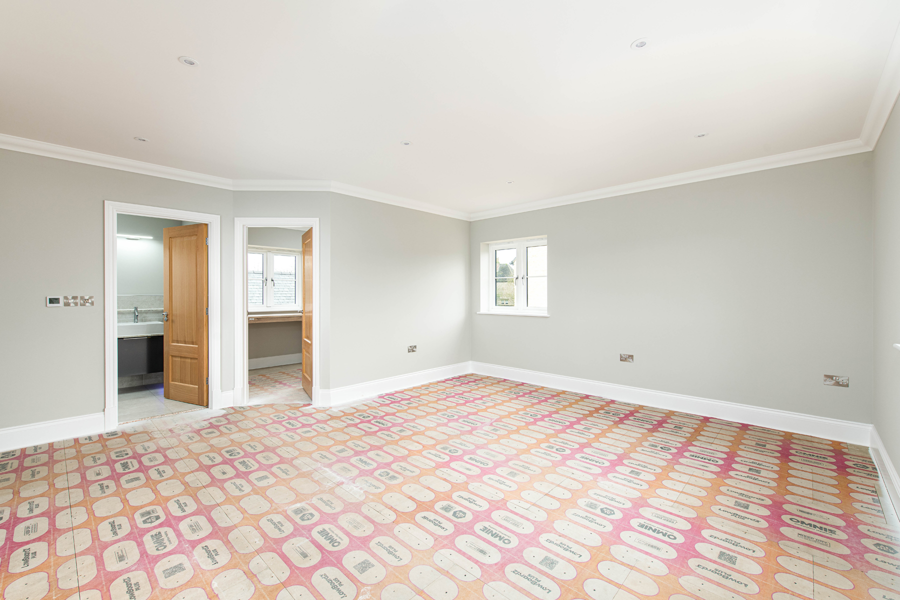 The first floor hosts four generous double bedrooms, including a luxurious principal bedroom with dressing room and ensuite. A second ensuite bedroom adds extra convenience, while a sleek family bathroom completes the accommodation.