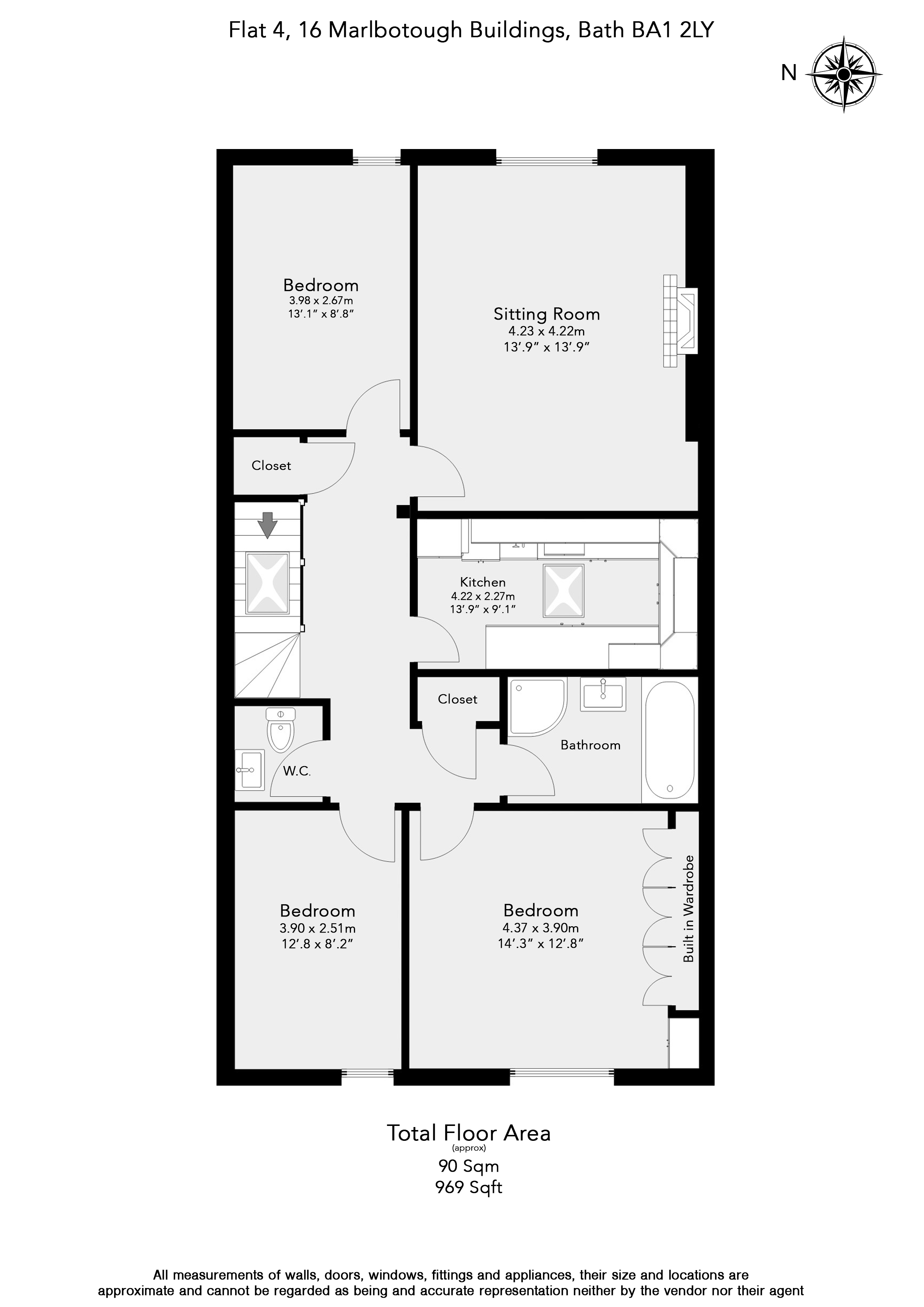 The property is entered through a large open hallway which provides access to all rooms. Within the apartment there are three well-proportioned double bedrooms, a spacious bathroom and separate cloakroom, and good size sitting room.