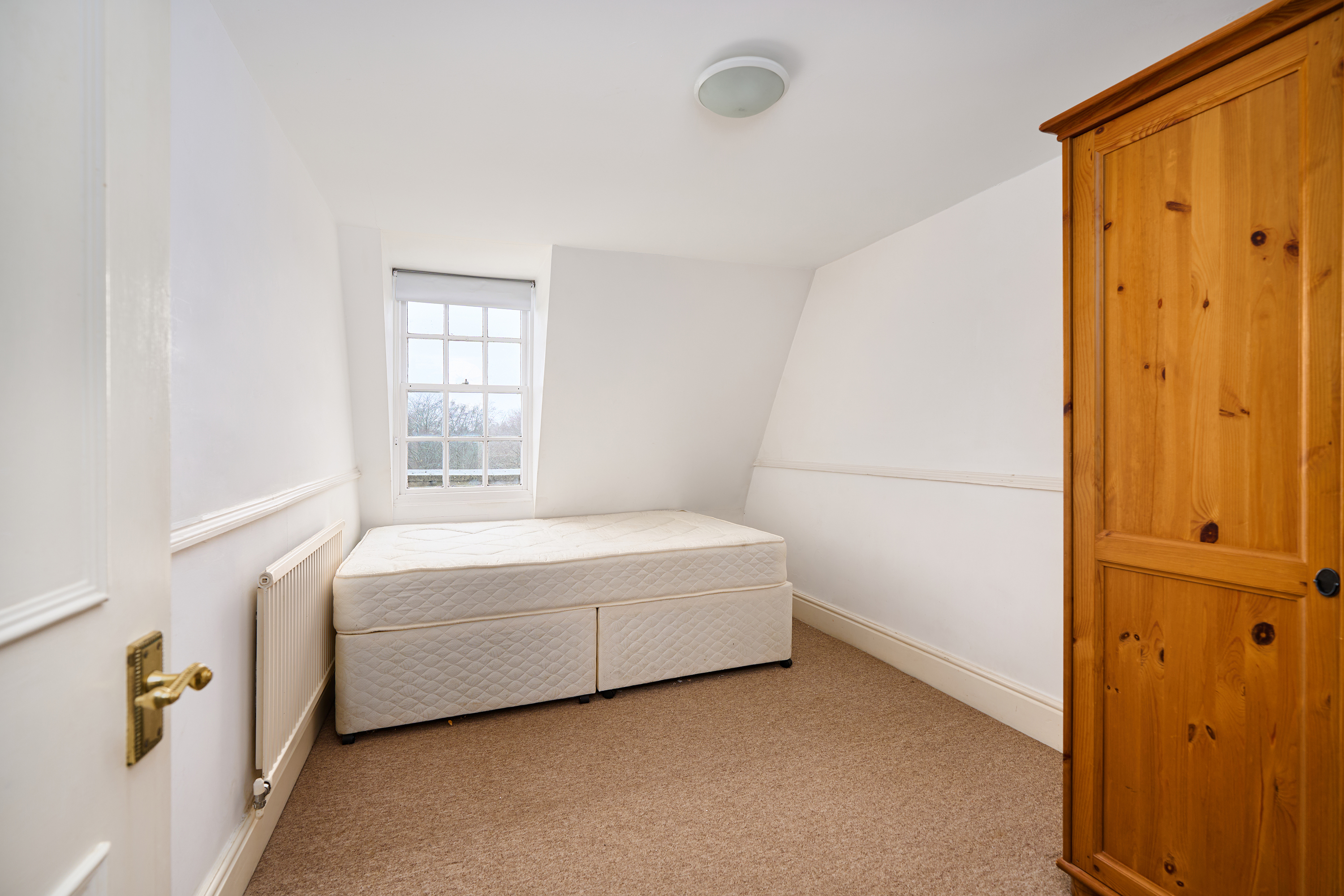 With rear aspect Georgian style sash window, far reaching views over Victoria Park, downlighting and single panelled radiator.