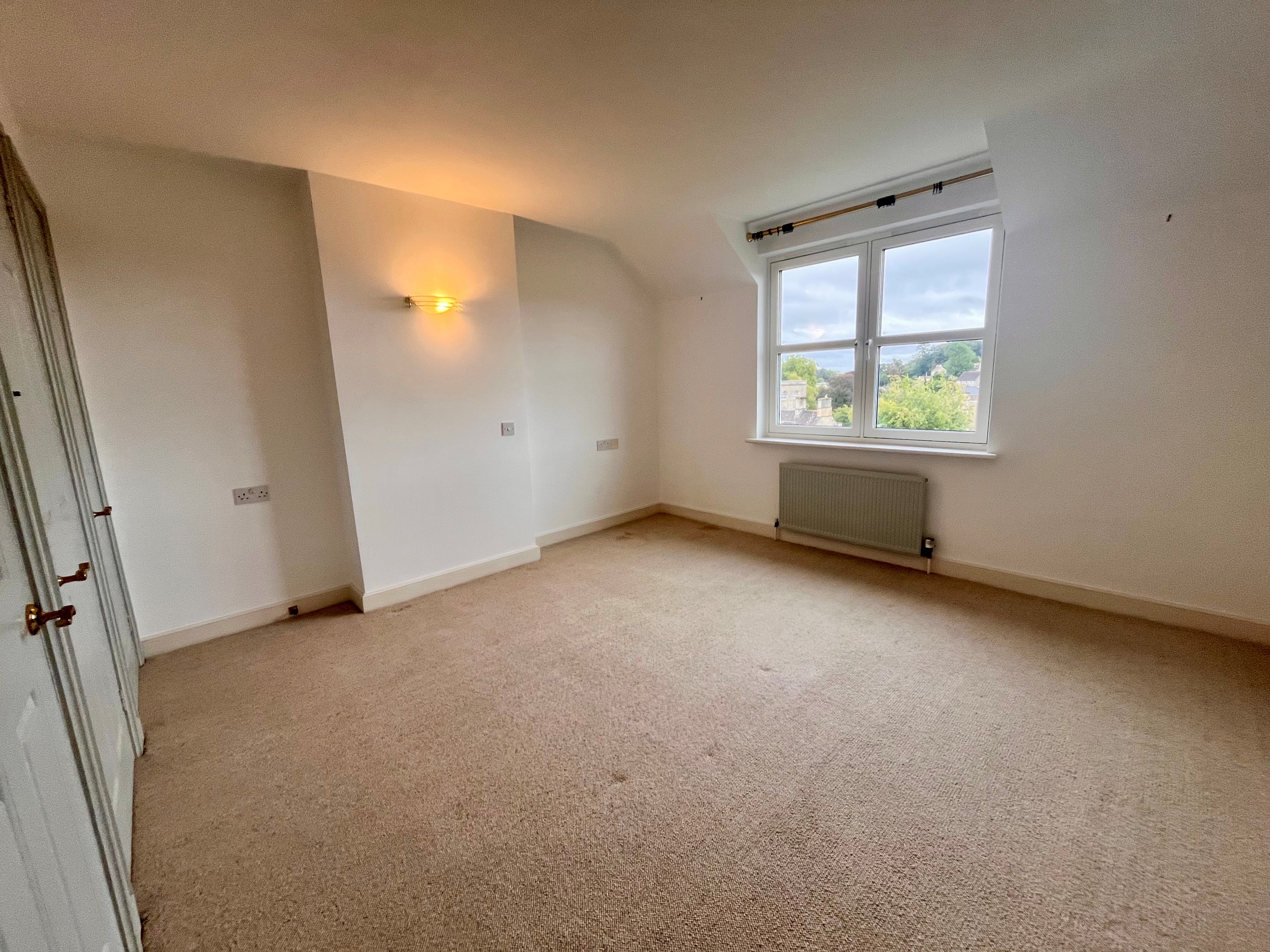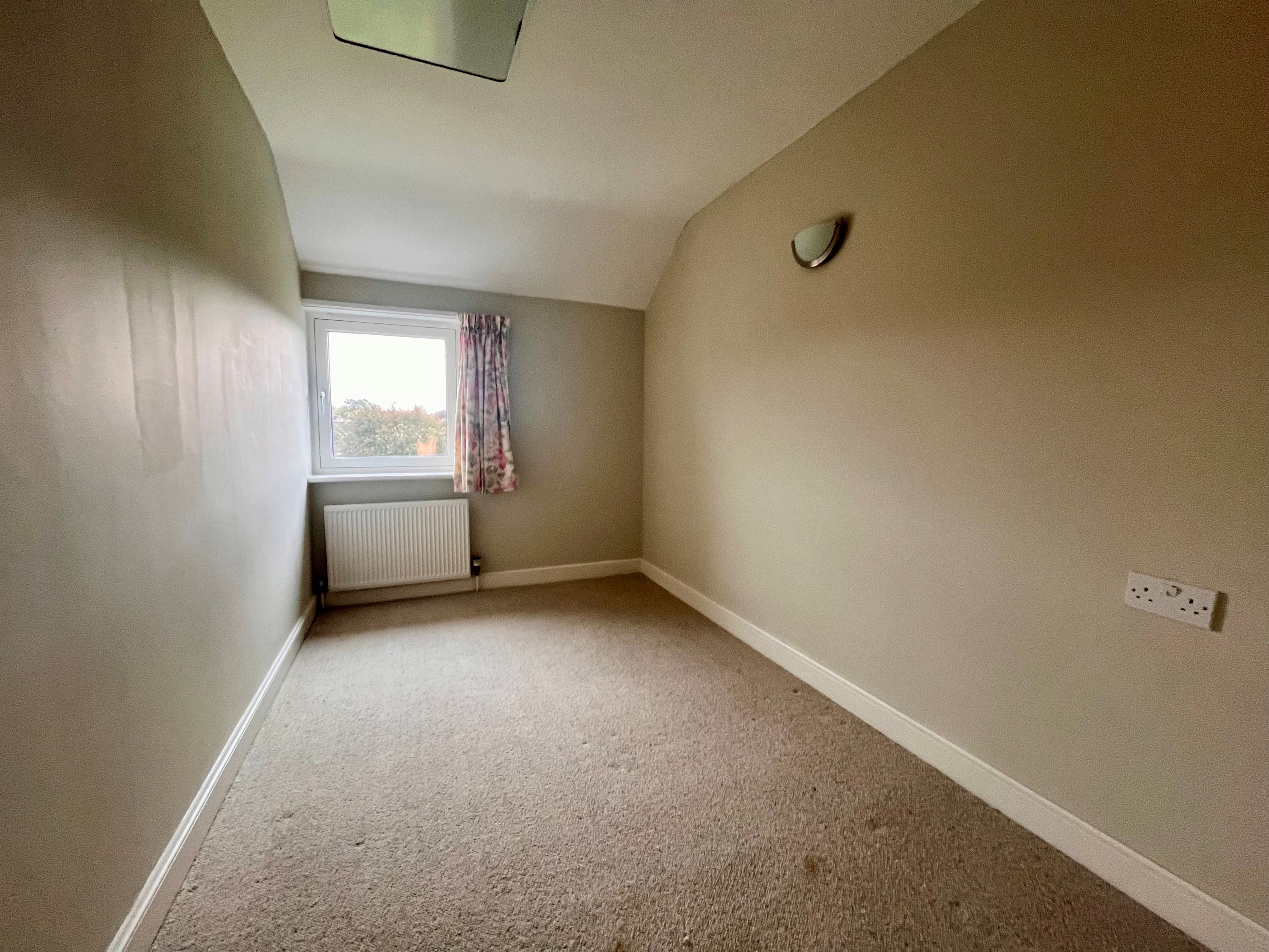 carpeted, wooden double glazed window to the rear overlooking the views across Bradford on Avon town, single storage cupboard with sensor light, hanging rail and shelf, loft hatch.