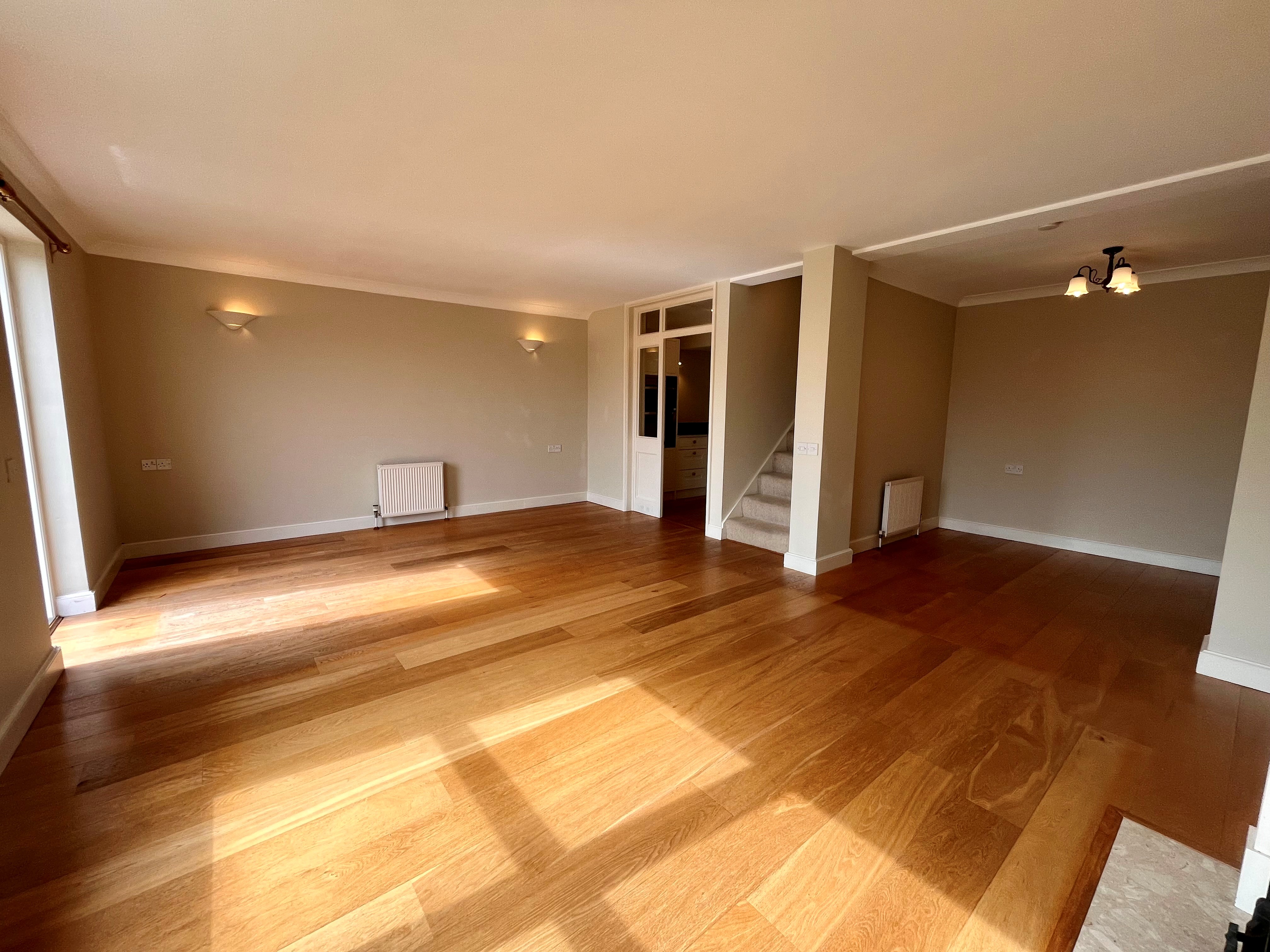 stairs descend into lounge/dining room area, with solid oak flooring on this level throughout, radiators, sockets, wall lighting in the lounge area, pendent light in dining room area, thermostat for heating, large double glazed wooden window to the rear overlooking the courtyard garden and views across to both Churches and Bradford on Avon town, further pedestrian single door to provide further views and access to the garden, gas fire with ornamental white fire surround, dining area off lounge with radiator, thermostat for heating, white panelled door and glazed side panel from lounge area into