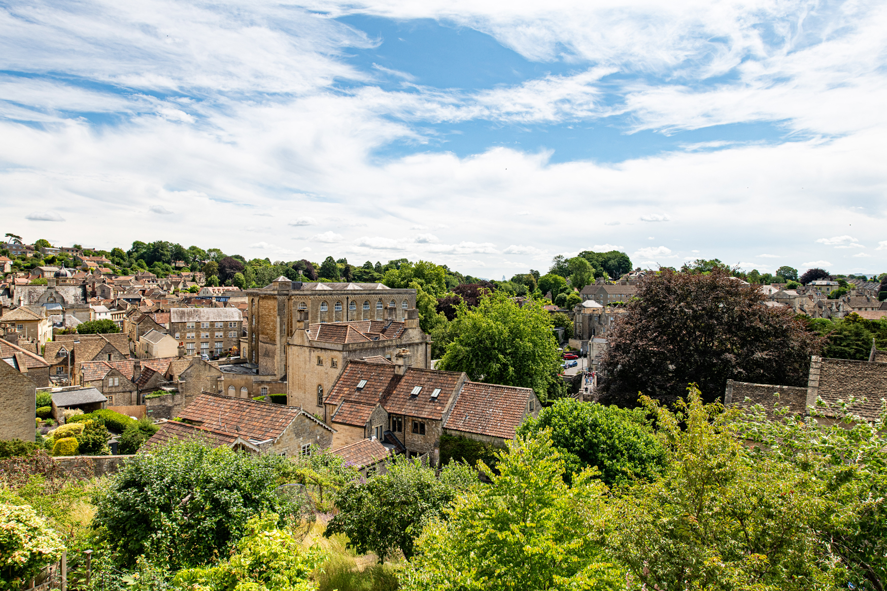 carpeted, large wooden double glazed windows to the rear with views across the town of Bradford on Avon, wall lights, sockets, radiator, two storage cupboards with sensor lighting and hanging space as well as shelving in each, further door into