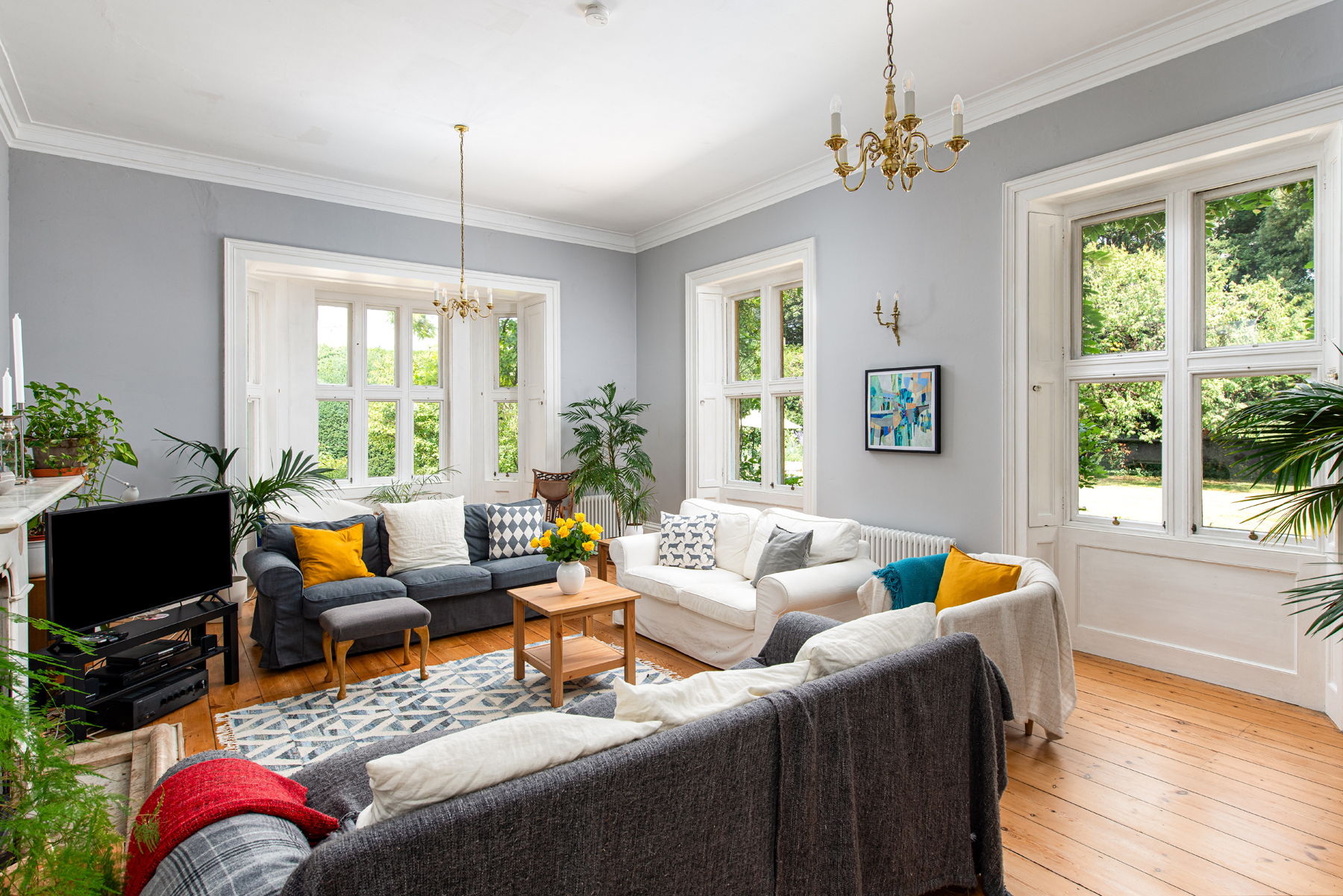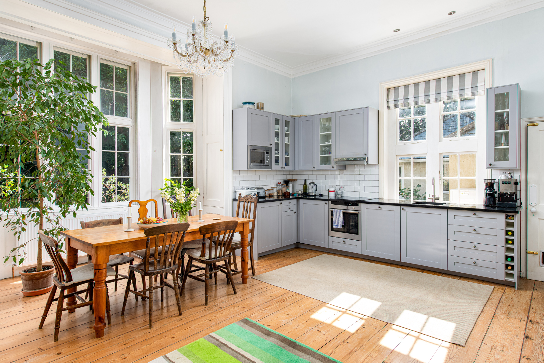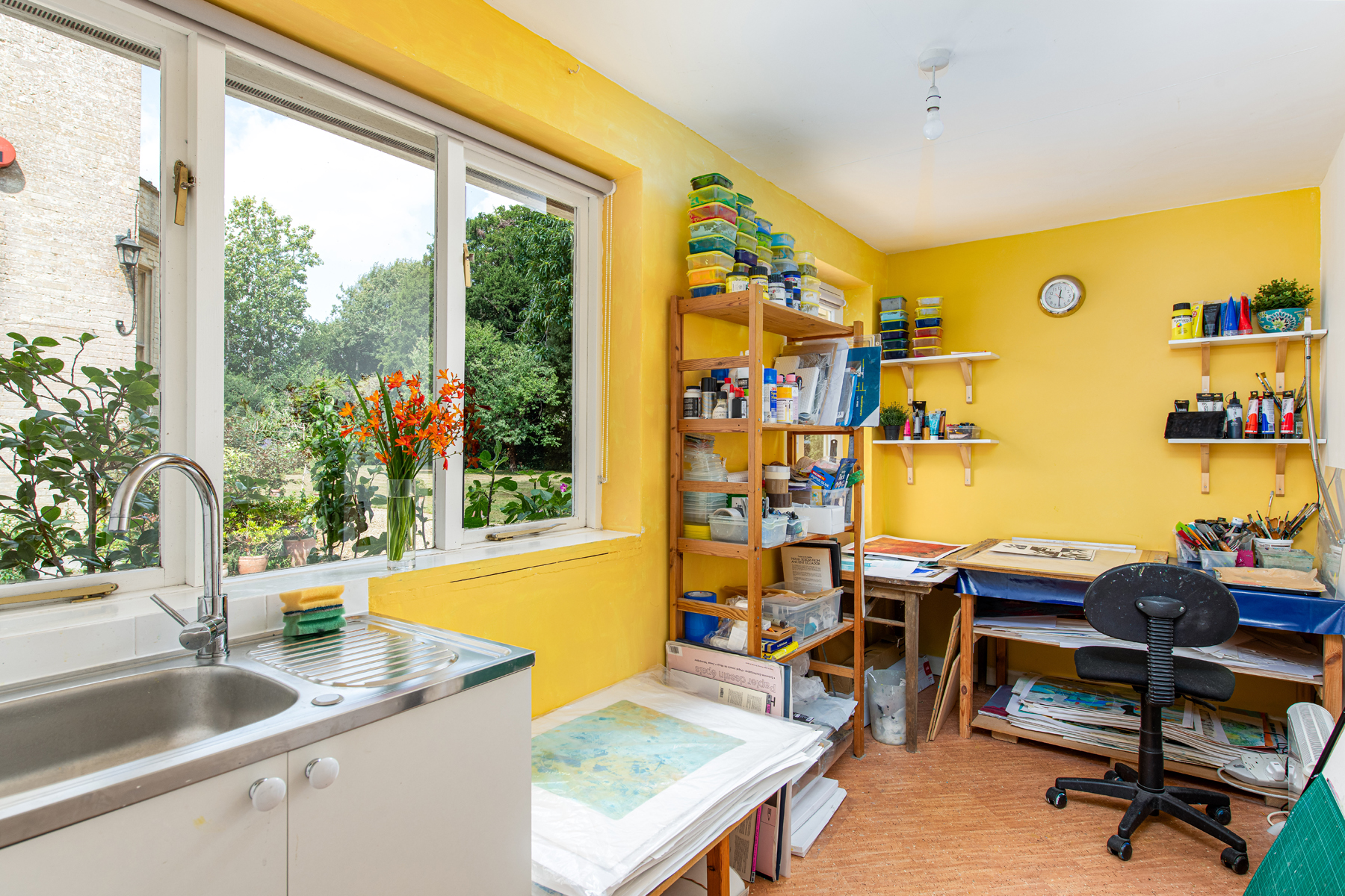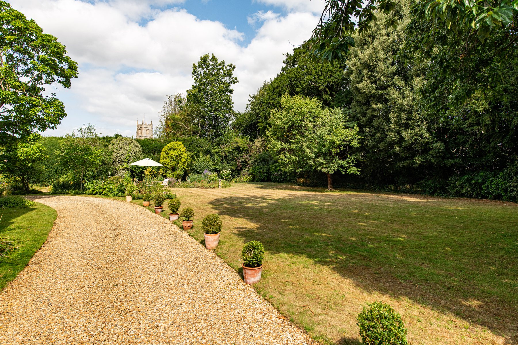 The first floor offers four well-appointed bedrooms, including a superb double-aspect principal suite with views towards the church and over the gardens, complete with its own private bathroom. The guest bedroom also benefits from an en-suite, while the remaining two bedrooms are served by a stylish family bathroom.